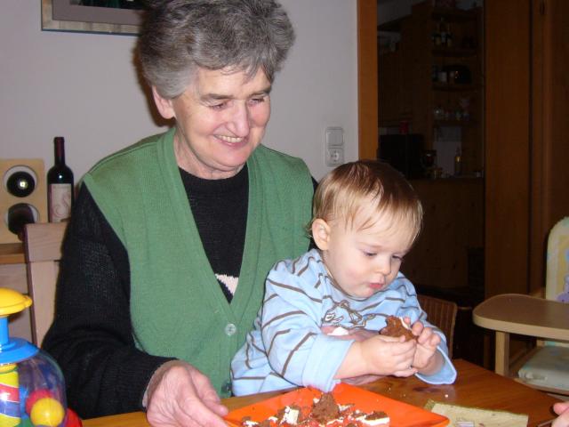 Die Geburtstorte wird von Schwester Laura überreicht